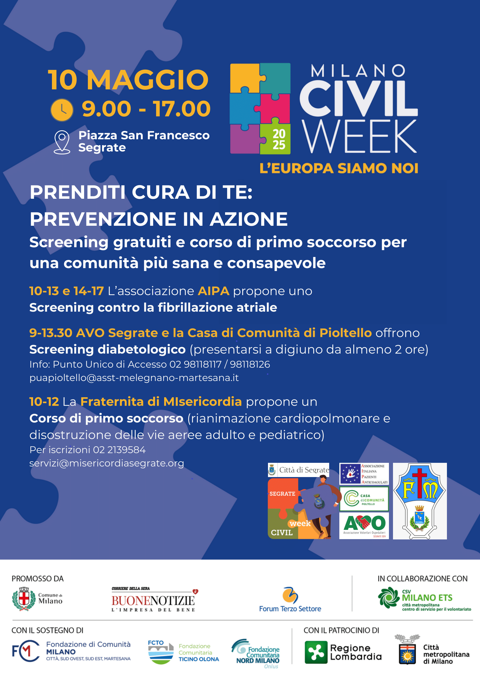 Milano Civil Week - Prevenzione e Screening | 10 maggio | Piazza San Francesco - Segrate | |