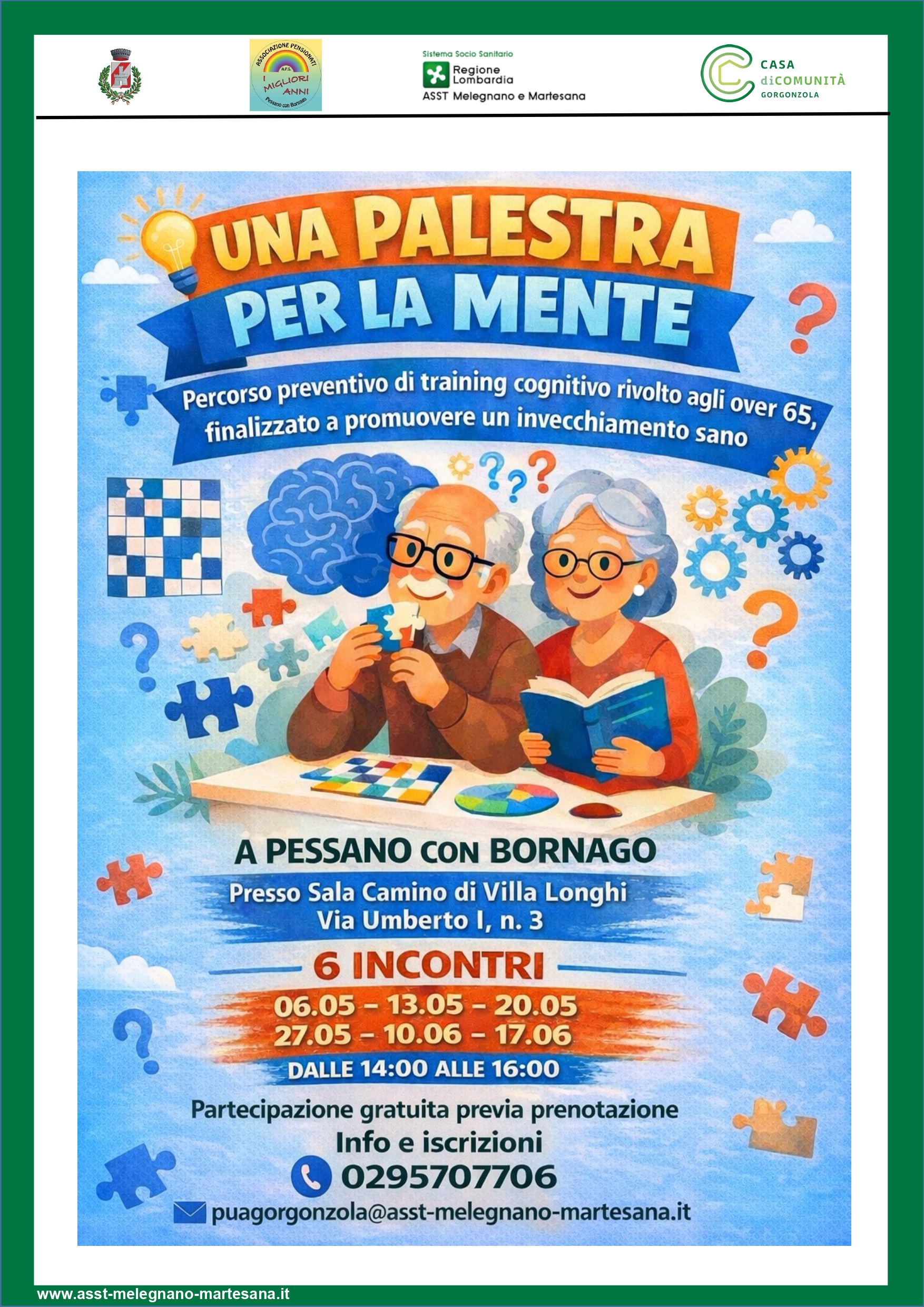 L’intervento ha il fine di intervenire a scopo preventivo sulla popolazione sana per implementare l’efficienza delle funzioni cognitive, apprendere strategie di compensazione e potenziare i momenti di aggregazione sociale.