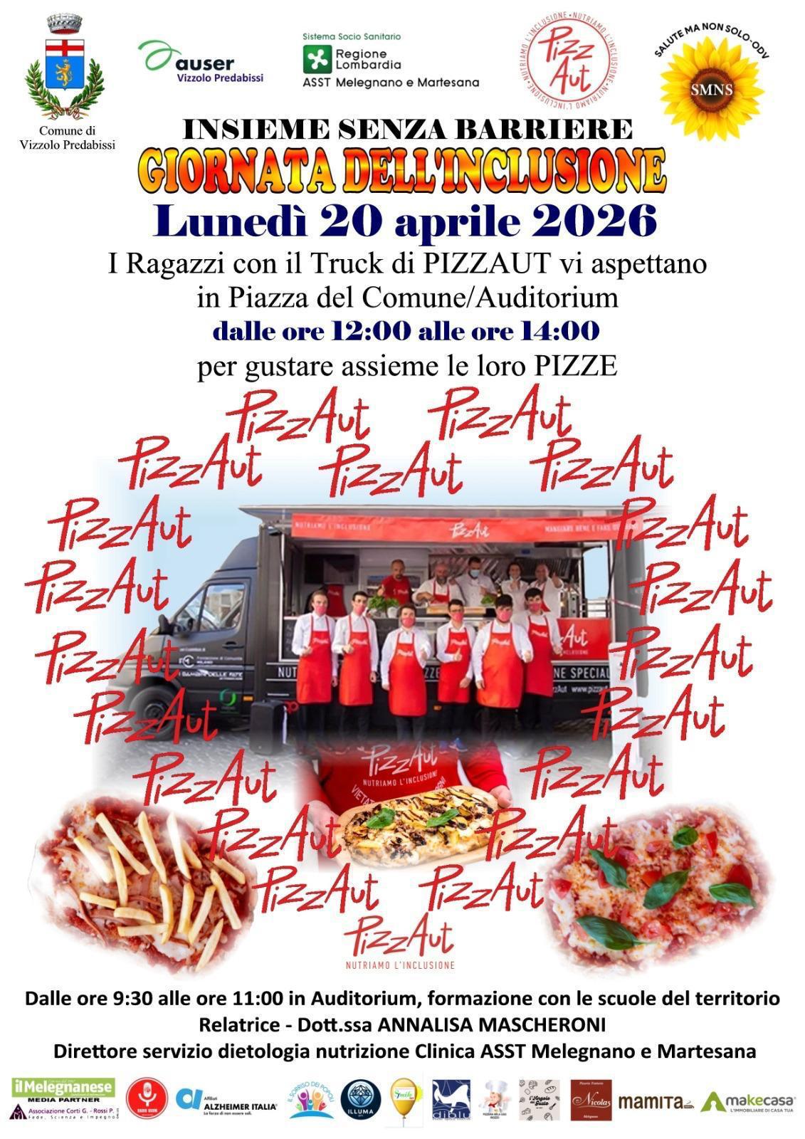 E dalle 12:00 alle 14:00 tutti a mangiare una pizza presso il FoodTruck di PizzaAut in piazza del comune a Vizzolo Predabissi.