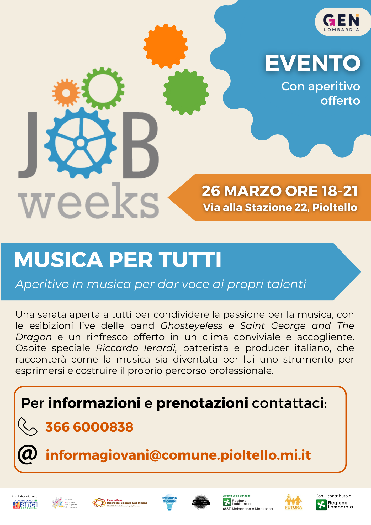 Approfitta di questa giornata per incontrare Cooperjob: porta il tuo curriculum, sostieni colloqui di selezione e scopri nuove opportunità di lavoro pensate per te.26 MARZO 18.00- 21.00 MUSICA PER TUTTI